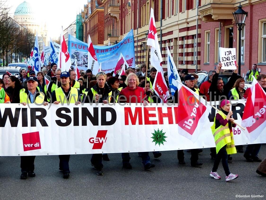 Viele Menschen brauchen etwas, woran sie ihr berufliches Wohlbefinden festmachen. Manche stehen gern in der ersten Reihe, andere bleiben lieber im Hintergrund. Bei mir kommt es darauf an, ob es sich um "mein Terrain" handelt. Aber prinzipiell liebe ich den öffentlichen Auftritt, die politische Wahrnehmung dessen, was und wie ich etwas tue. Als Bezirksgeschäftsführer bei ver.di war ich politisch z.B. auch für die Tarifrunden des Öffentlichen Dienstes verantwortlich. Also die Steuerung, Organisation, Mobilisierung und Koordinierung der beteiligten Bereiche und Gewerkschaftssekretäre. Mir oblagen auch die Absprachen mit den zu beteiligen (Landes)Vorsitzenden der DGB-Partnergewerkschaften, die von der Tarifrunde betroffen waren. Also GEW bei Lehrern und GdP für die Bundes- oder Landespolizei und auch der DBB. Wenn wir Demonstrationen an Streiktagen planten und mit der Polizei als Versammlungsbehörde abstimmen mussten, war mir auch immer ein hoher Wahrnehmungsfaktor des Anliegens wichtig. Daher suchten wir möglichst viele Menschen aus dem ganzen Land in Potsdam als Landeshauptstadt zusammenzuziehen. Also aus den Behörden von der Uckermark und Frankfurt über Cottbus und Brandenburg. Zu einem guten Wahrnehmungsfaktor gehörte auch stets eine Route, bei der wir in Potsdam sowohl die Innenstadt (Luisenplatz, Bassinplatz) "blockierten" und auch die Straßenbahn für 2-3 Stunden nicht fahren konnte, weil die Straße unsere Marschroute war und natürlich auch große Hauptstraßen beeinträchtigt waren, weil der Autoverkehr durch die Polizei gestoppt werden musste.