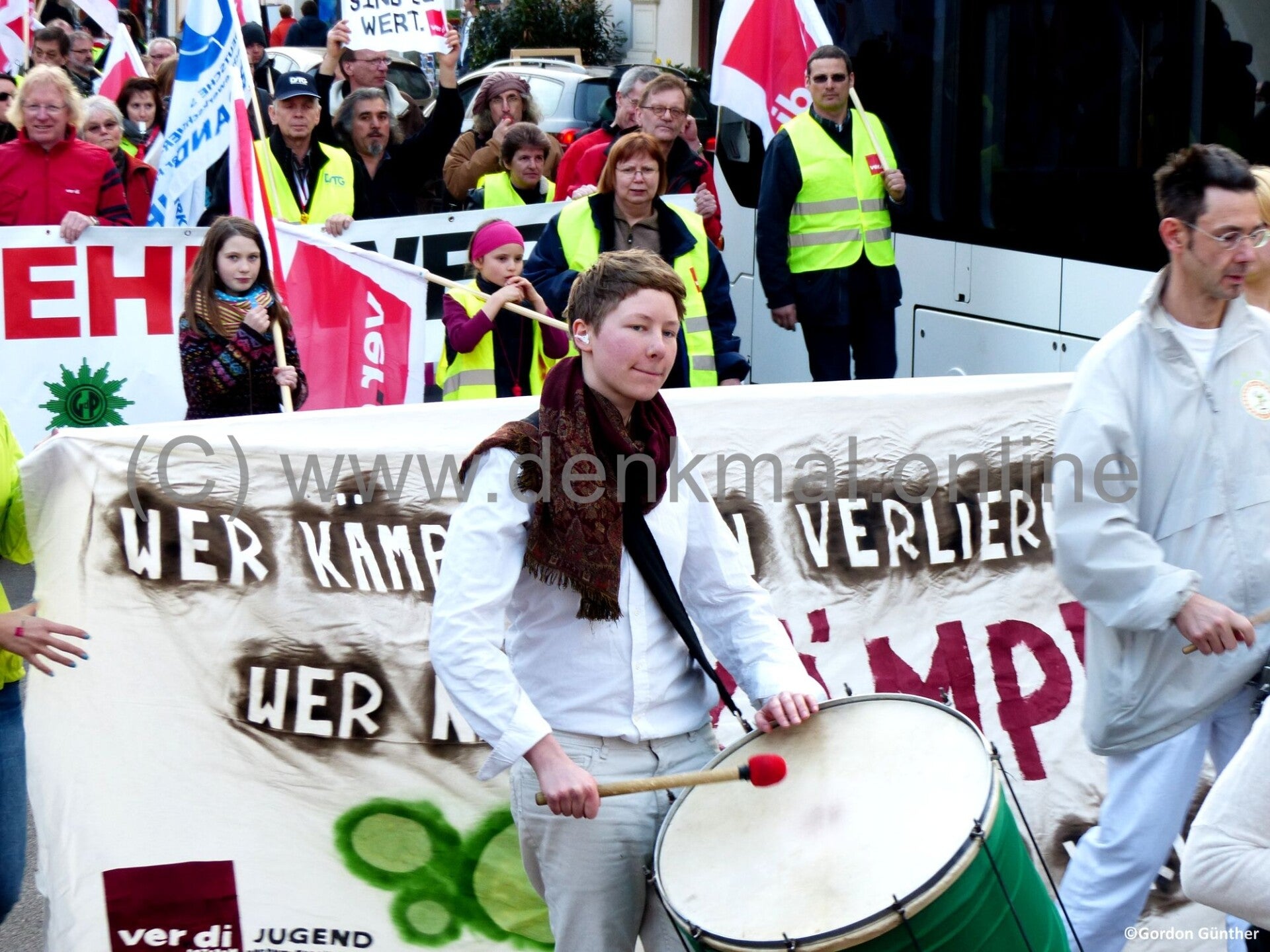 "Martialisch" mussten unsere Warnstreikdemonstrationen sein. Deshalb immer mit "Kampftrommlern" vorweg, deren Trommeln in den schmaleren Straßen besonders laut war. Und ich ganz persönlich liebte auch die Auftritte auf diesen Bühnen und meine große Stärke war, Plätze zum kochen bringen zu können, an den Bauch der Streikenden zu appellieren und auch für Lacher zu sorgen. Ein verstorbener Kollege aus meinem Bezirk sagte einmal, man darf auch die Politiker, also Minister oder so anmachen. Jeder Politiker weiß, die Streikbühnen sind "die Reichsparteitage der Gewerkschaften" und auf denen ist fast alles erlaubt und das müssen die Politiker aushalten und trotzdem reden wir danach wieder miteinander, weil es nichts gibt, was man persönlich nehmen darf.