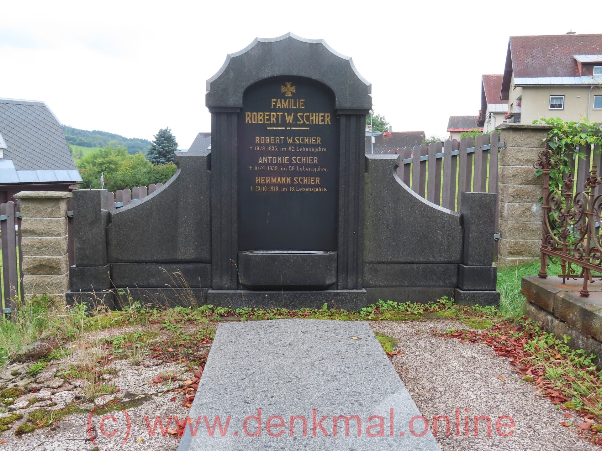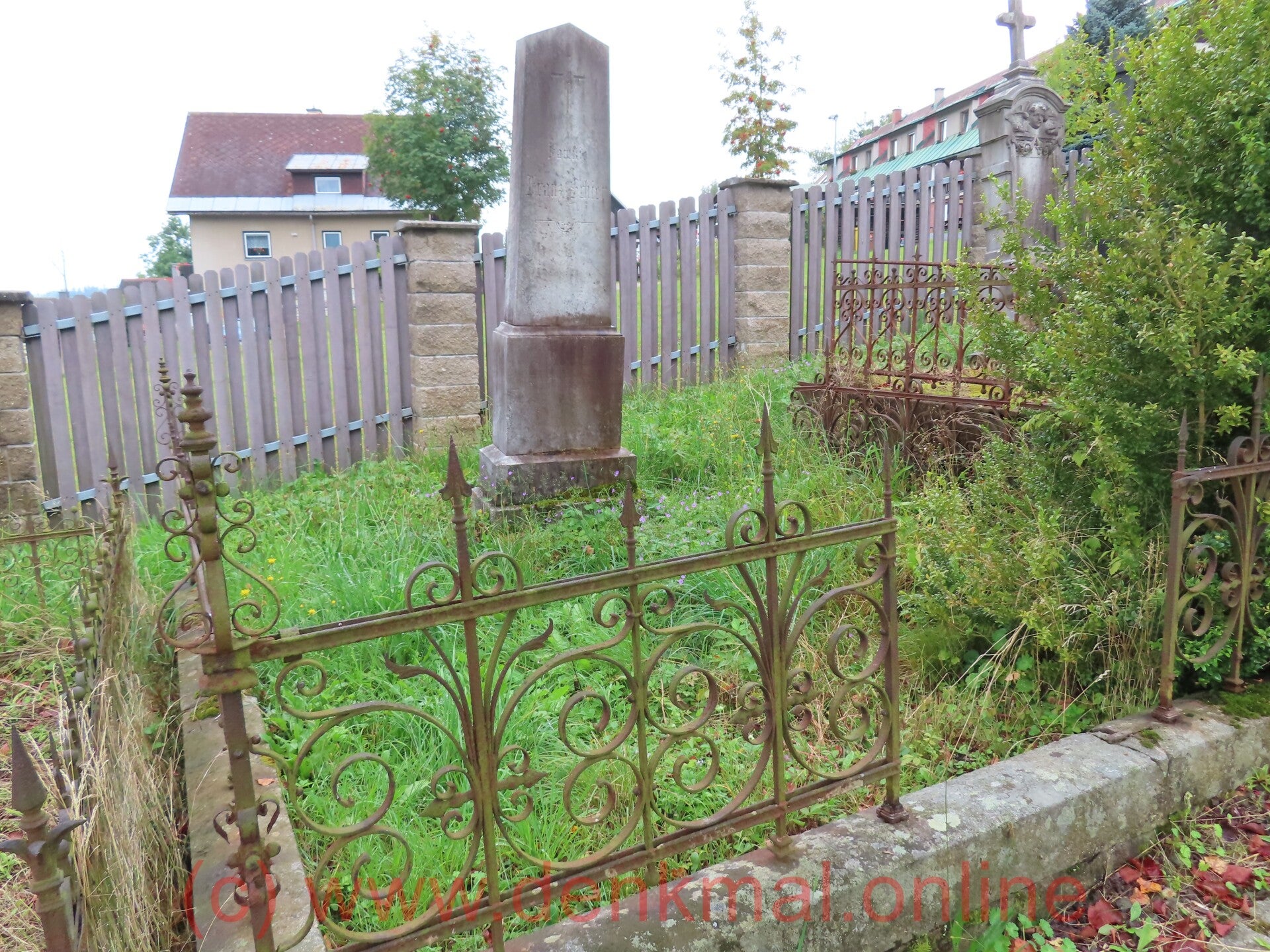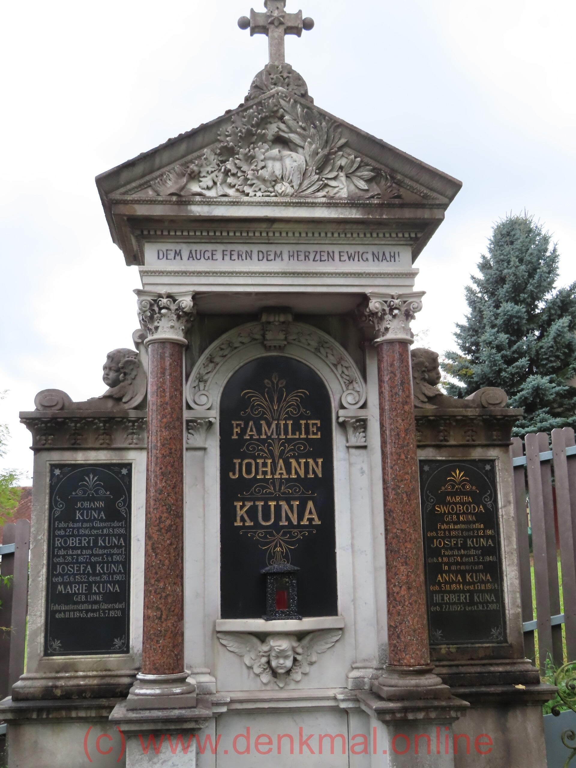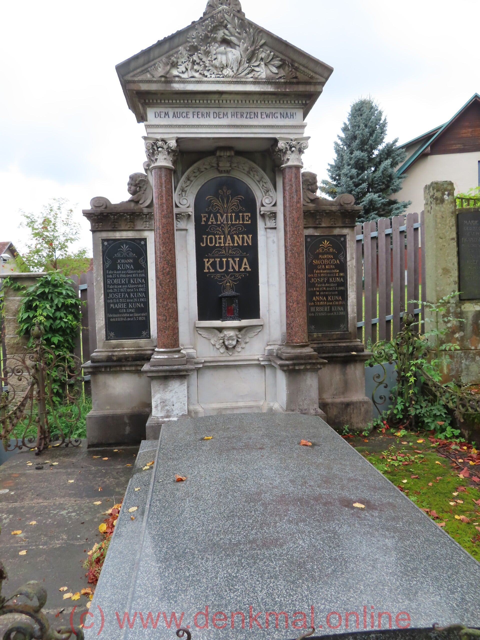 Auf einem großen Stein sind noch Franz und Josef Hajek lesbar und Josef und Edgar Langhammer. Alles andere ist verwittert. Aber der Stein mit der sich öffnenden Tür ist beeindruckend.