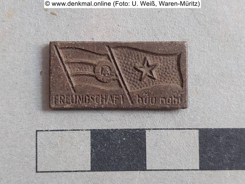 Ein Abzeichen "Freundschaft DDR - Vietnam". Mein Vater hatte Anfang der 1970er Jahre 2 vietnamesische Abiturienten, Sen und Chan, mit denen uns auch gegenseitige Besuche der Familien verbanden. Die waren um 1974 auch zu Besuch im Zeltlager. Wahrscheinlich stammt es aus dieser Zeit.