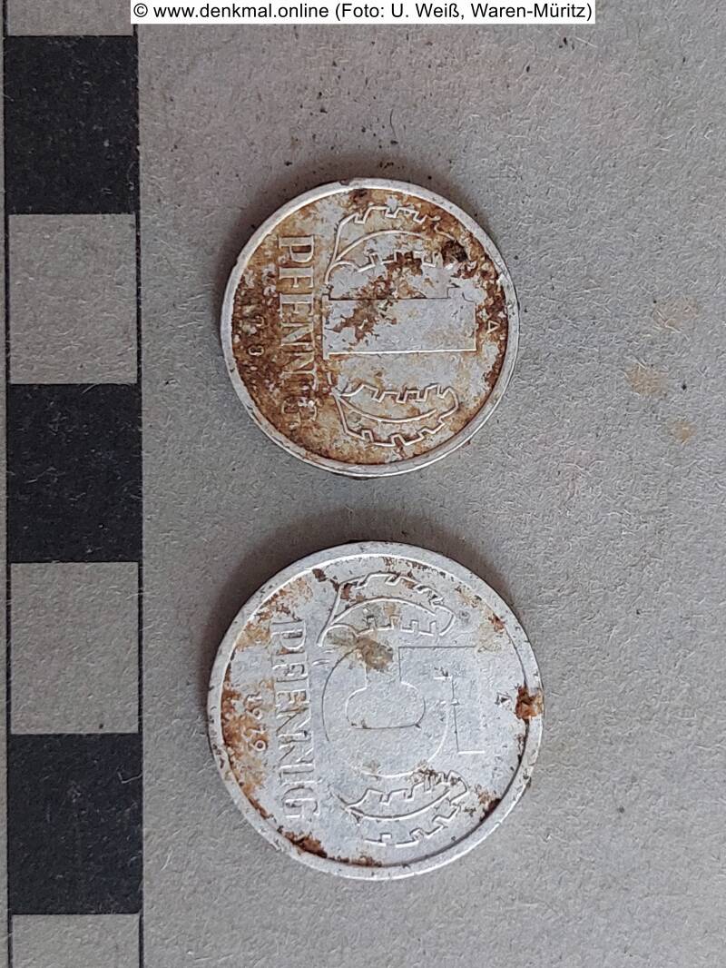 Vermutlich von einem Zeltreißverschluss - rechts: DDR-Geld