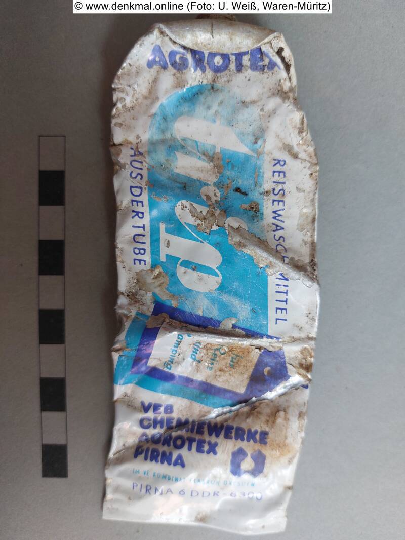 Zwischenzeitlich interessiert sich auch das Heimatmuseum von Waren Müritz für dieses Zeltlager. Im Sommer 2025 verabredete ich mich mit dessen Leiter vor Ort und zeigte und erläuterte ihm den Aufbau des Lagers, zeigte ihm die Artefakte, wie alte Stromanschlusskästen und die Gruben, auf denen die Toilettenhäuschen standen. Anfang 2026 ging er mit einem Metalldetektor durch das alte Lager und fand noch ein paar Erinnerungen.